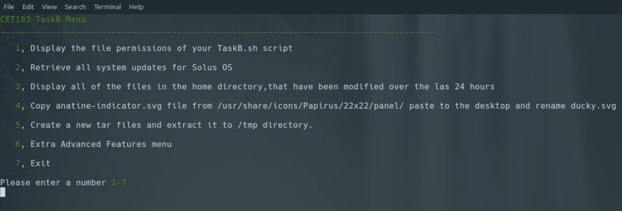 echo "$(tput setaf 2)CET103 TaskB Menu$(tput sgr 0)"