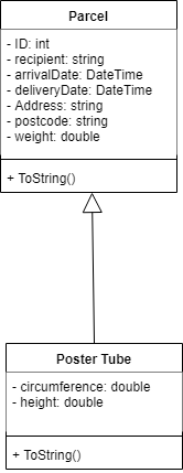The SDA management team have considered your recommendations and have tasked you with designing, documenting, and implementing a class hierarchy, to better represent parcels and poster tubesin the system.