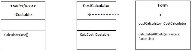 Demonstrate the use of an Interface to allow extensible calculation of delivery costs (See rules for costing provided in Appendix.) |