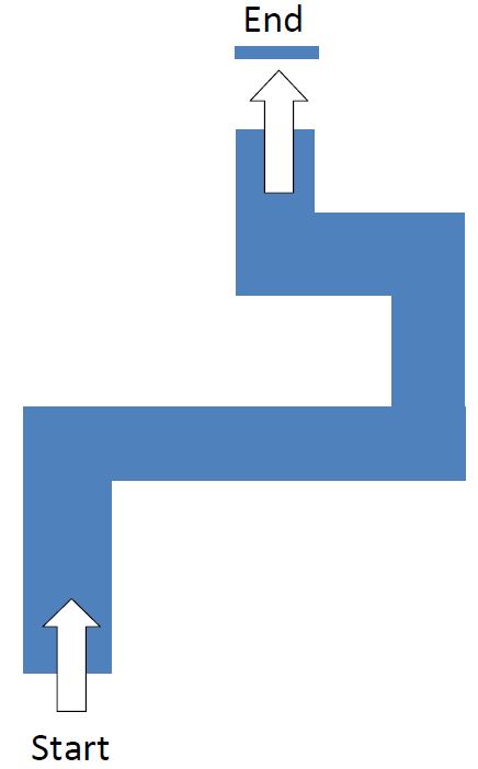 Note that this just one example of such a tunnel. Your robot should be capable of navigating any tunnel of equivalent difficulty. The tunnel will be at least 60cm wide and all turns will be right angles (with enough space that a robot of standard configuration will be able to turn without obstruction. The end marker point will be placed 60cm from the opening of the tunnel and will be the size of a printer paper box lid (i.e. just larger than A4).