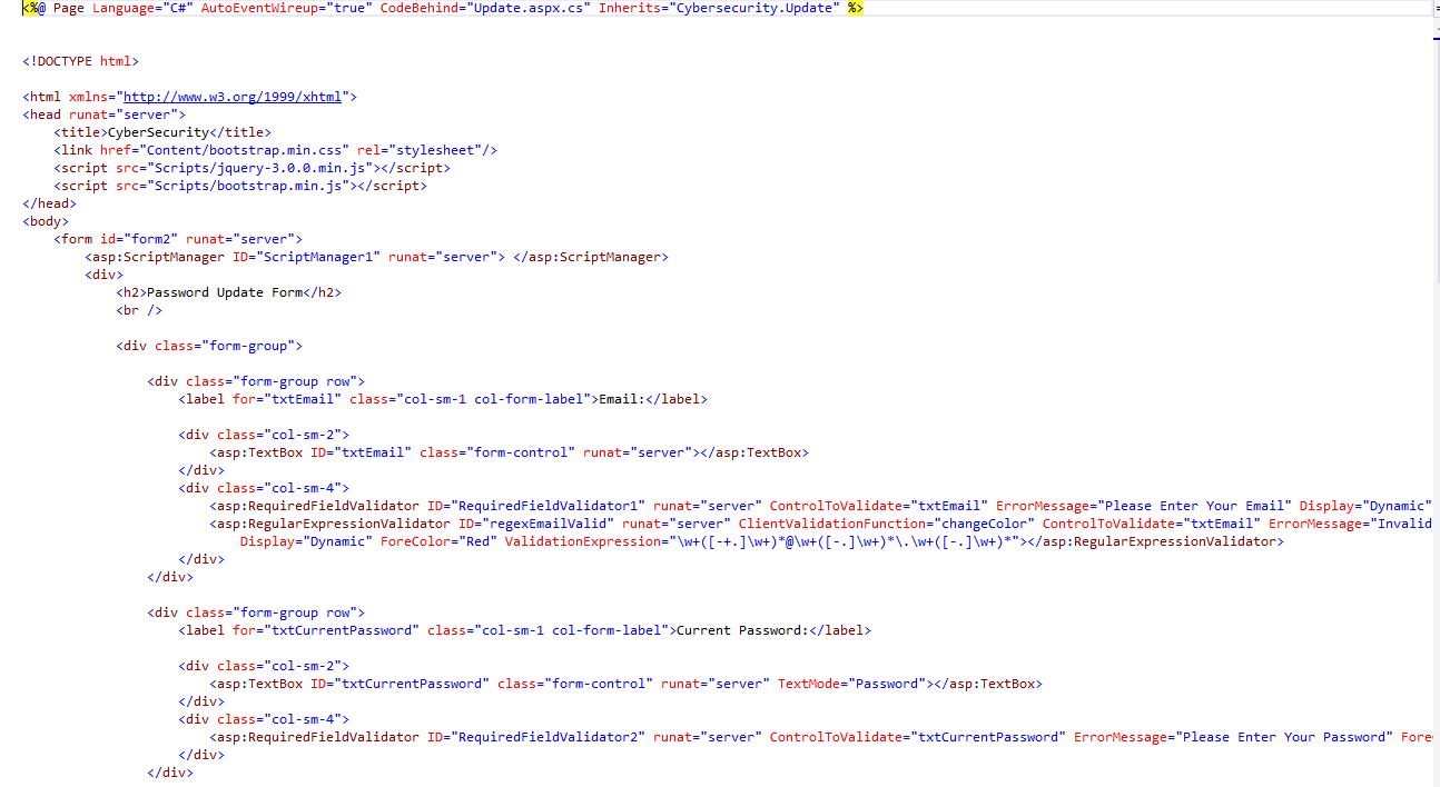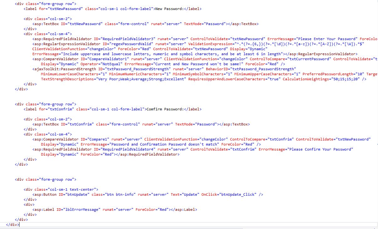Password Update Form (Update.aspx.cs) Shows: Encrypt passwords, Check new password in old password table, it didn't use in last year.
