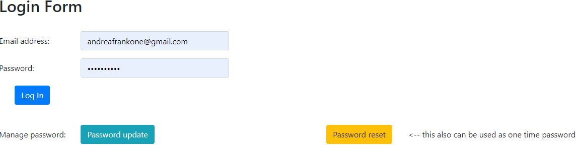 On the Login form page, you can access the page by entering your e-mail and password. In addition, password update and reset are possible.