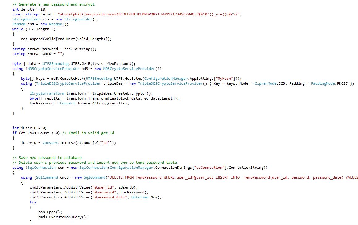 Password Update Form (Update.aspx.cs) Shows: Check email and password matching, Encrypt old password, Check main password table first