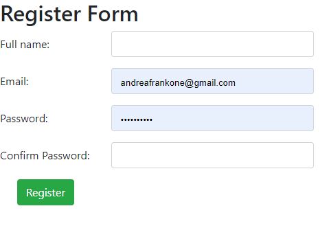 On the Register Form page, register by entering the full name, Email, Password and Confirm Password.
